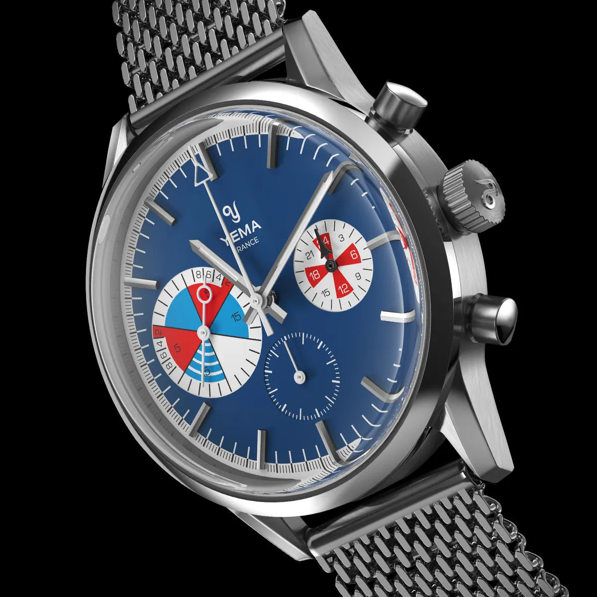 thanks to the “big-eye” oversized sub-register. A rare detail on chronographs, the emphasis of the minutes counter changes the dynamic of the watch greatly, making it stand out from other chronographs. Specially designed for purpose, it acts as a countdown to the start of a sailing race, helping helmsmen to obtain the best position, reaching the starting line at full speed, just as the starting gun sounds
